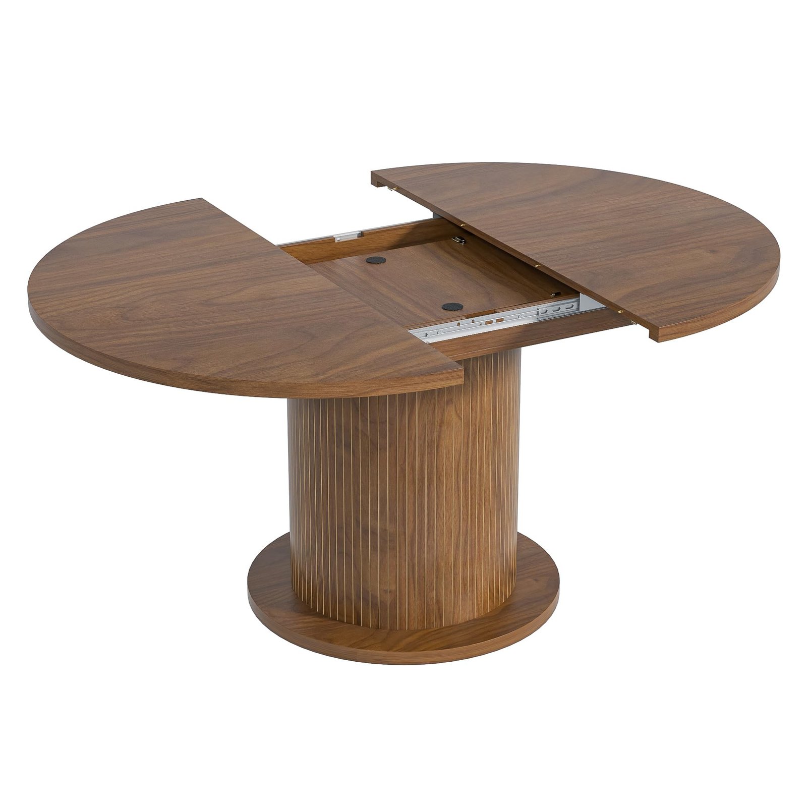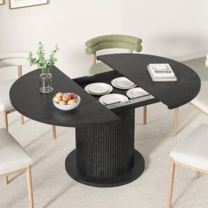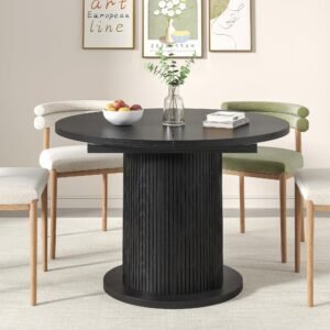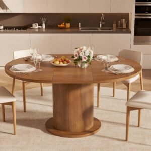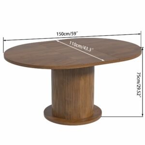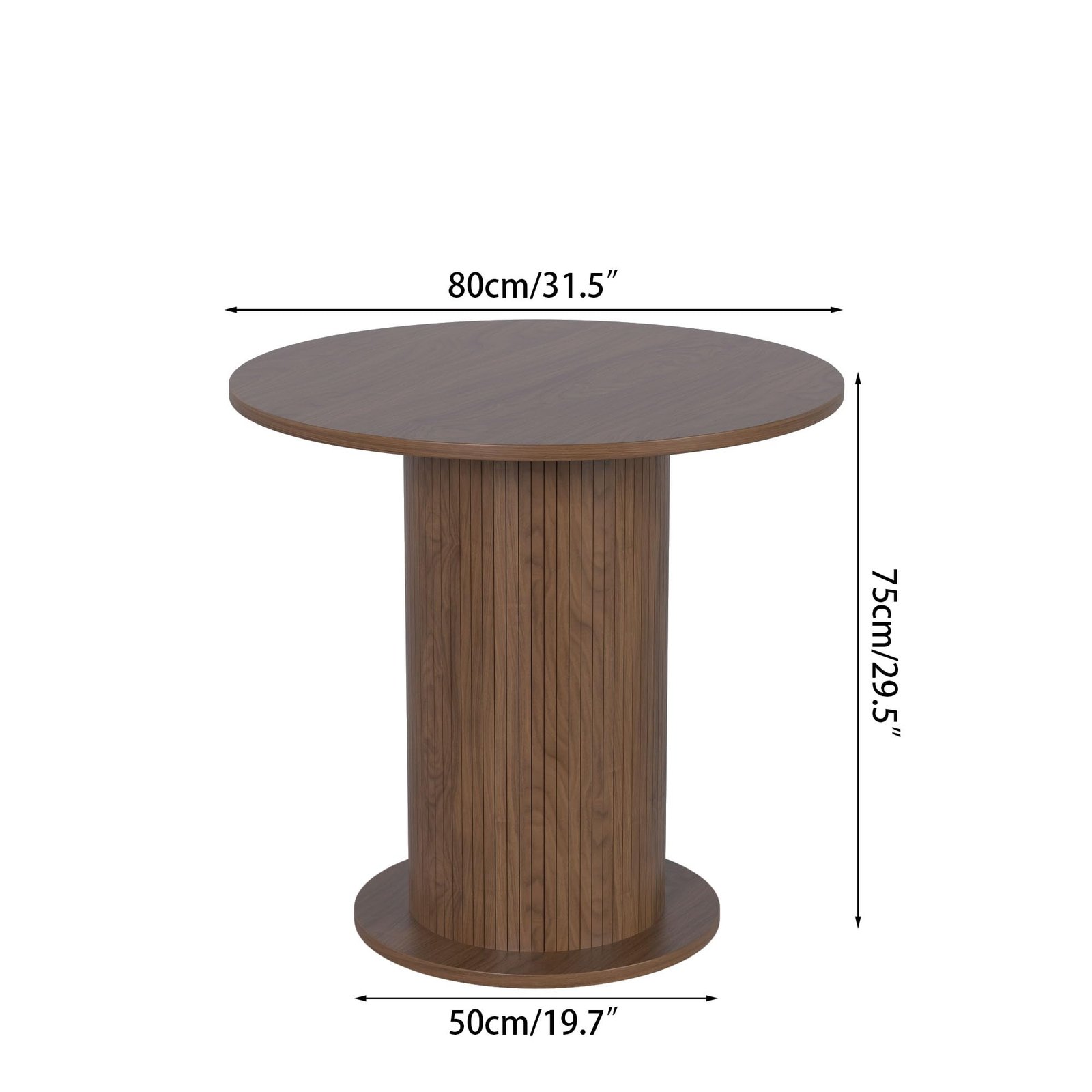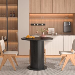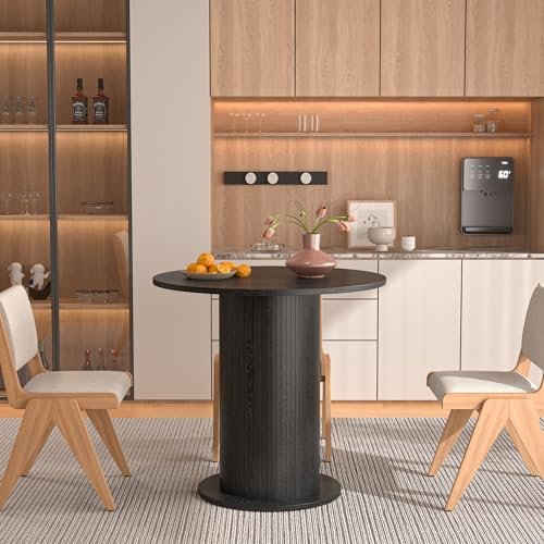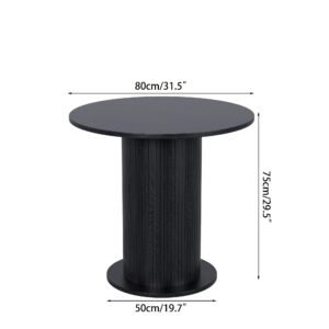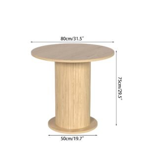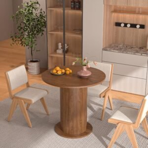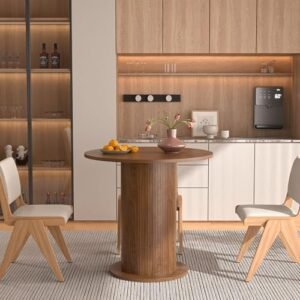 Brand:LUVIOHOME Product Dimensions:19.7″D x 31.5″W x 29.5″H Maximum Weight Recommendation:220 Pounds Color:Walnut Product Care Instructions:Wipe with Dry Cloth Item Weight 50.4 Pounds:Frame Material Engineered Wood :Item Weight 50.4 Pounds :Frame Material Engineered Wood Top Material Type Engineered Wood:Shape Round :Top Material Type Engineered Wood :Shape Round · 【Modern and Elegant】31.5 inch round dining table is stylishly designed with a chic oak finish that will add an artistic touch to any kitchen or dining room and ensure it blends in with any interior style. · 【Perfect for 2 People】With a measurement of 31.5 inches, this round kitchen table provides ample space for intimate gatherings and family meals, comfortably seating 2 people. · 【Multi-Occasion】This versatile round kitchen table can be used for various occasions, not only as a dining table, it can also be a coffee table, casual table, office waiting room. · 【Durable】Crafted from high quality MDF and wood veneer, the tabletop and wood strip base provide lasting durability and an elegant modern farmhouse aesthetic. The sealed tabletop is water resistant and easy to clean with a damp cloth, protecting against scratches and spills. · 【Easy To Assemble】The package includes clear instructions and marked parts that you can quickly install this table.