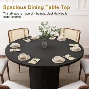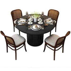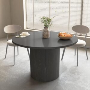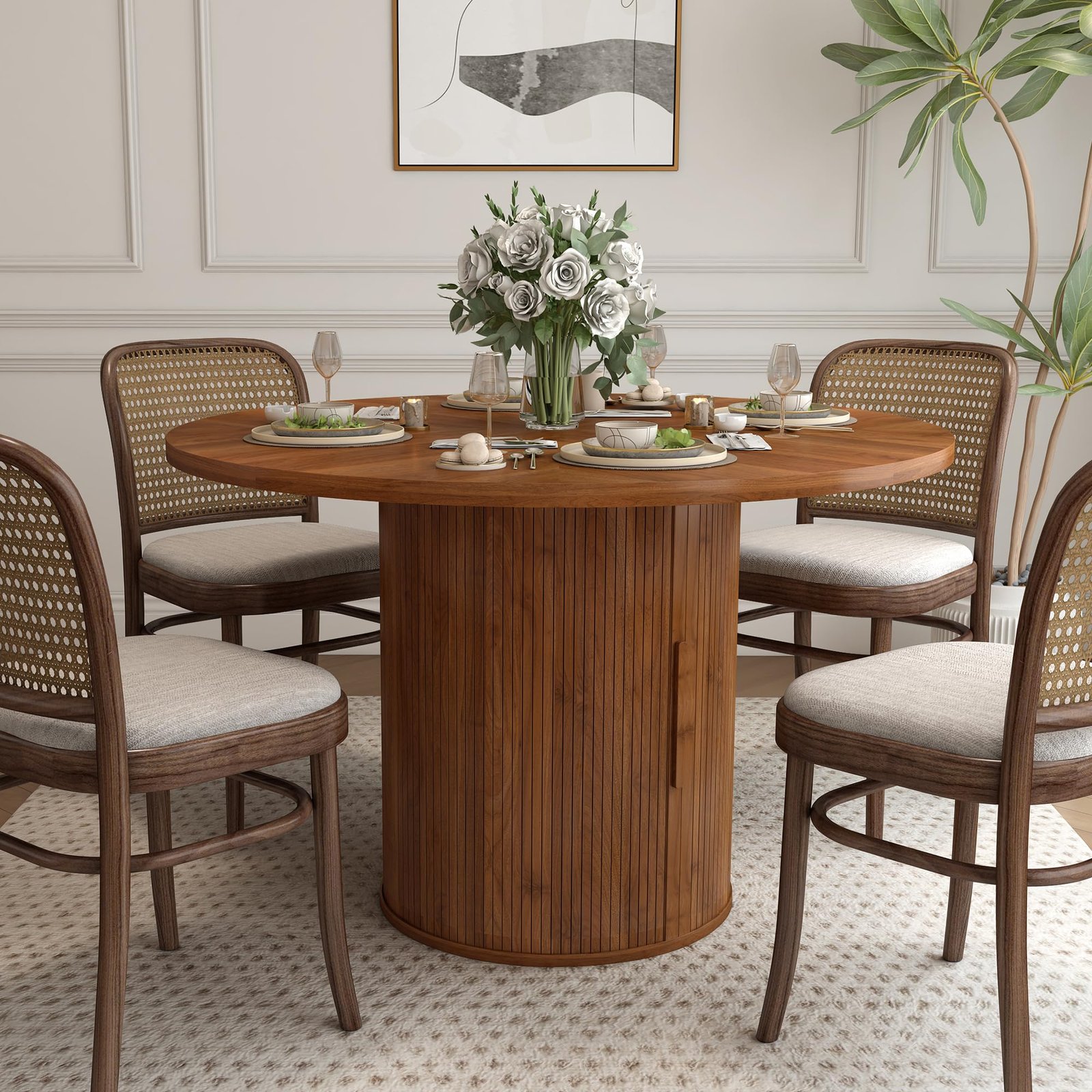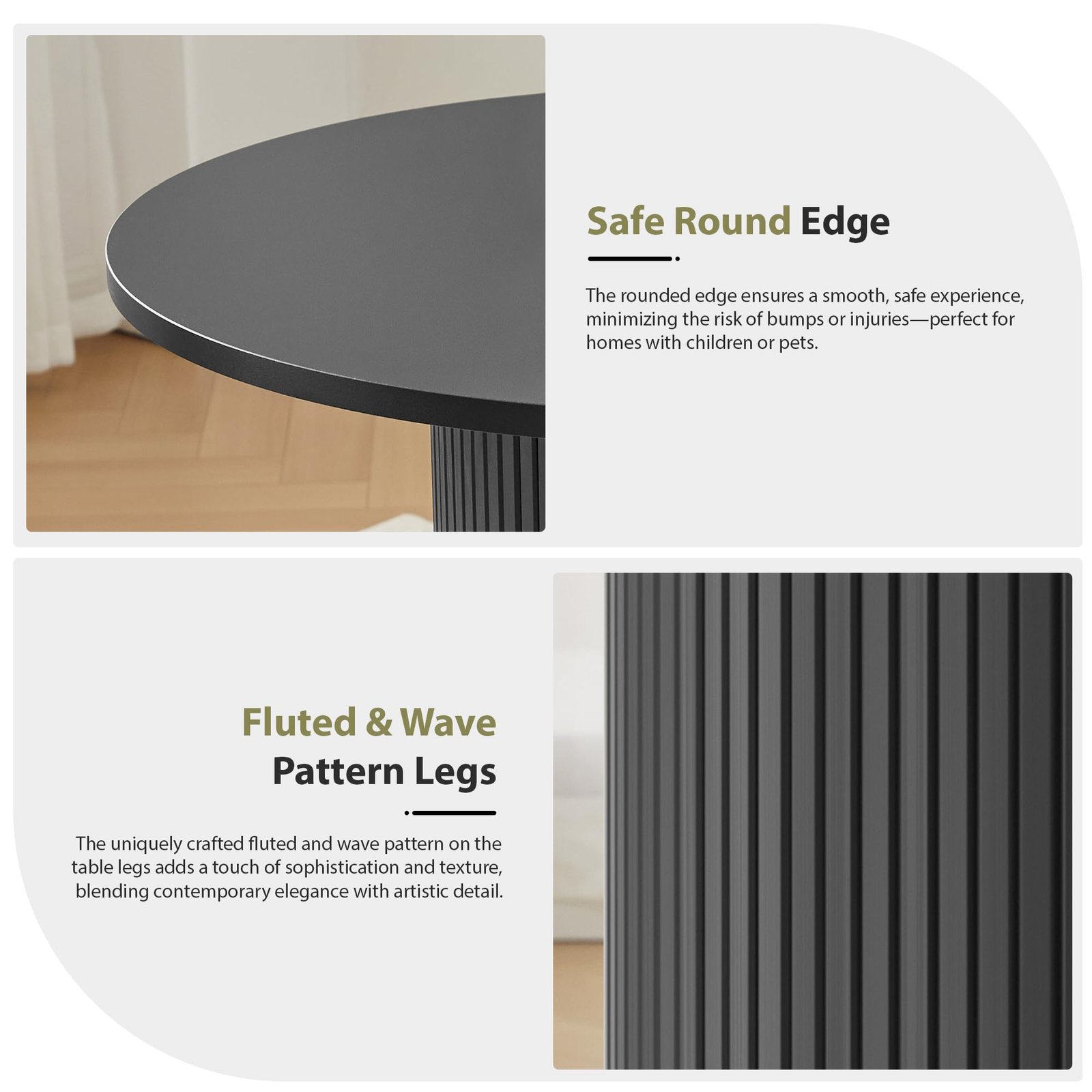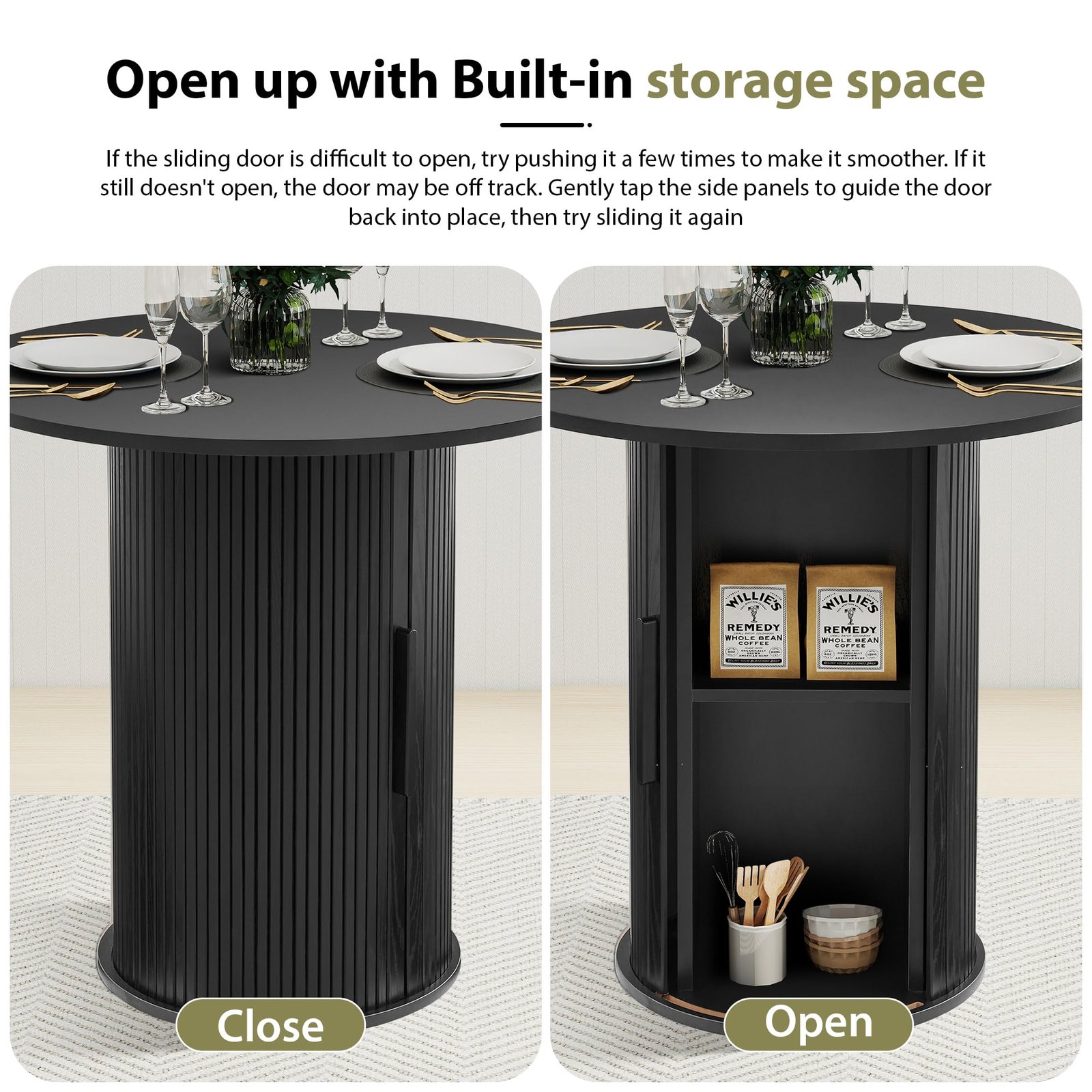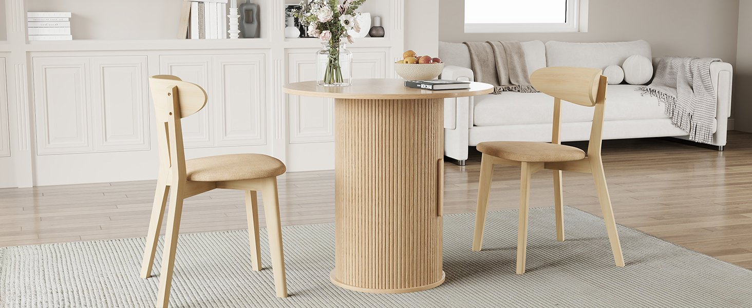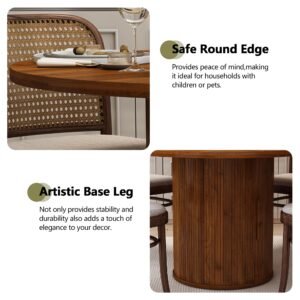 Brand:weselon Product Dimensions:31.5″D x 31.5″W x 29.5″H Maximum Weight Recommendation:66 Pounds Color:Natural Oak 31.5″+hidden Storage Style:Modern Item Weight 44 Pounds:Frame Material Metal :Item Weight 44 Pounds :Frame Material Metal Top Material Type Resin:Shape Round :Top Material Type Resin :Shape Round · 【Elegant & Compact Design】This 31.5 inch round dining table for 2-4 people features a solid one-piece circular tabletop, unlike split-panel alternatives. Its MDF finish and wood veneer surface offer a modern accent with retro farmhouse charm, making it a stylish addition to small kitchens, apartments, or dining nooks. · 【Sturdy Fluted Pedestal Base】Supported by a metal frame and fluted wood strip pedestal, this small circle dining table provides both style and strength. The mid-century inspired wood strip base ensures long-lasting durability while adding a decorative, sculptural touch to any home or living room setting. · 【Smart 2-Tier Storage Shelf】Designed with built-in dual-layer storage, this round kitchen table keeps dining essentials, books, or decor easily accessible. Whether used for daily meals or as a leisure coffee table or center table, it blends storage and function in compact spaces. · 【Versatile for Any Occasion】Perfect for modern or farmhouse interiors, this small dining table works great in home kitchens, living rooms, or office lounges. Use it for casual dinners, coffee breaks, or as a guest table for light meetings. Its compact size is ideal for apartments and small spaces. · 【Easy Assembly & Maintenance】Dimensions: 31.5″ x 29.5″. The sealed tabletop is water-resistant and easy to clean with a damp cloth. Assembly is quick and straightforward with detailed instructions. We’re here to help with any questions during setup.