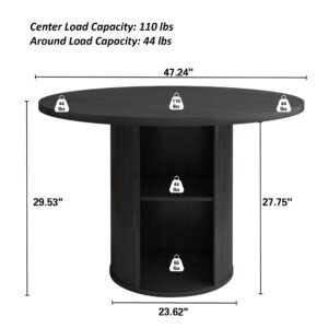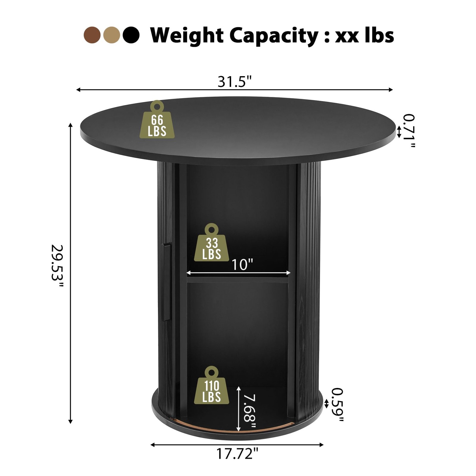 31.5″ Round Dining Table for 2-4, Modern Farmhouse Kitchen Table with 2-Tier Storage Shelf, Small Wooden Circle Dining Tables with Fluted Base for Home Dining Room Living Room (Natural)