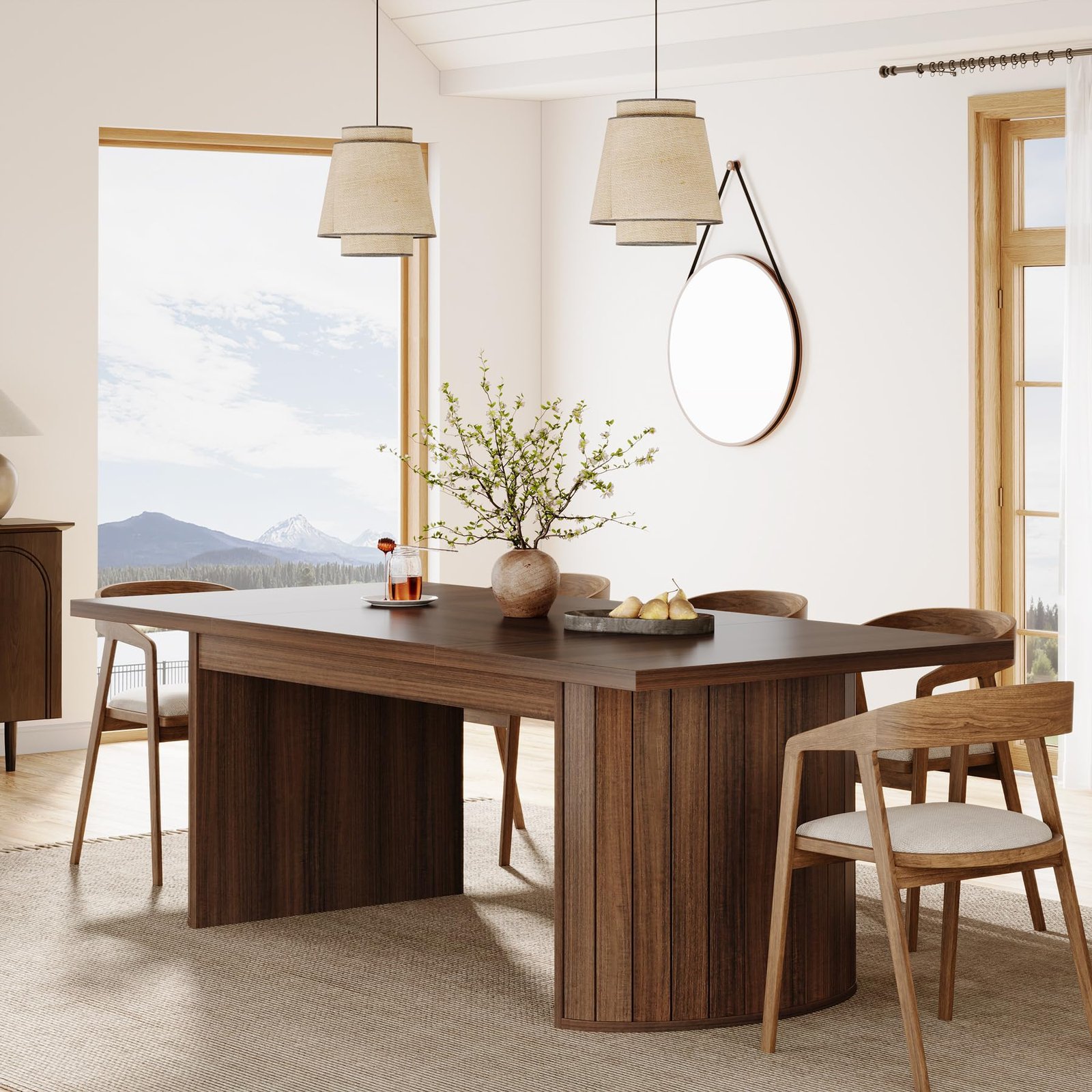 · Minimalist Farmhouse Style: With a vintage walnut finish and adorned with captivating wooden slat sides, the Tribesigns dining table exudes warm, farmhouse vibes. Regardless of whether your home decor is modern, rustic, or eclectic, it's the ideal complement