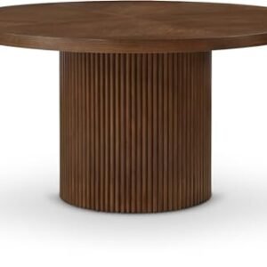 Furniture 730Brown-T Belinda Collection Modern | Contemporary Dining Table with Solid Wood Base, Dark Walnut Brown Finish Oak Wood Veneer, Round Top, Fluted Base, 59