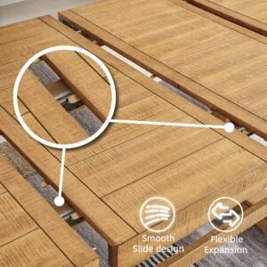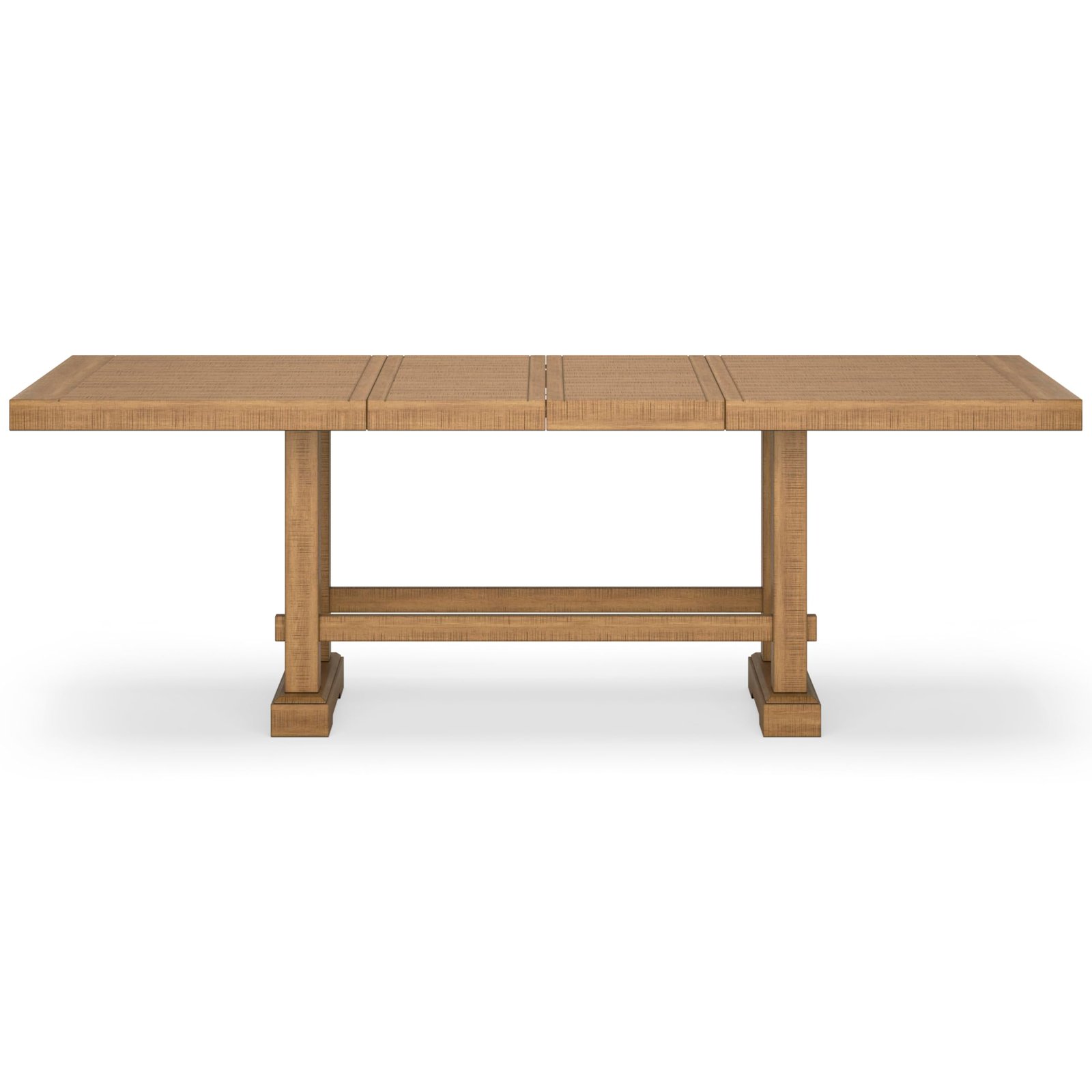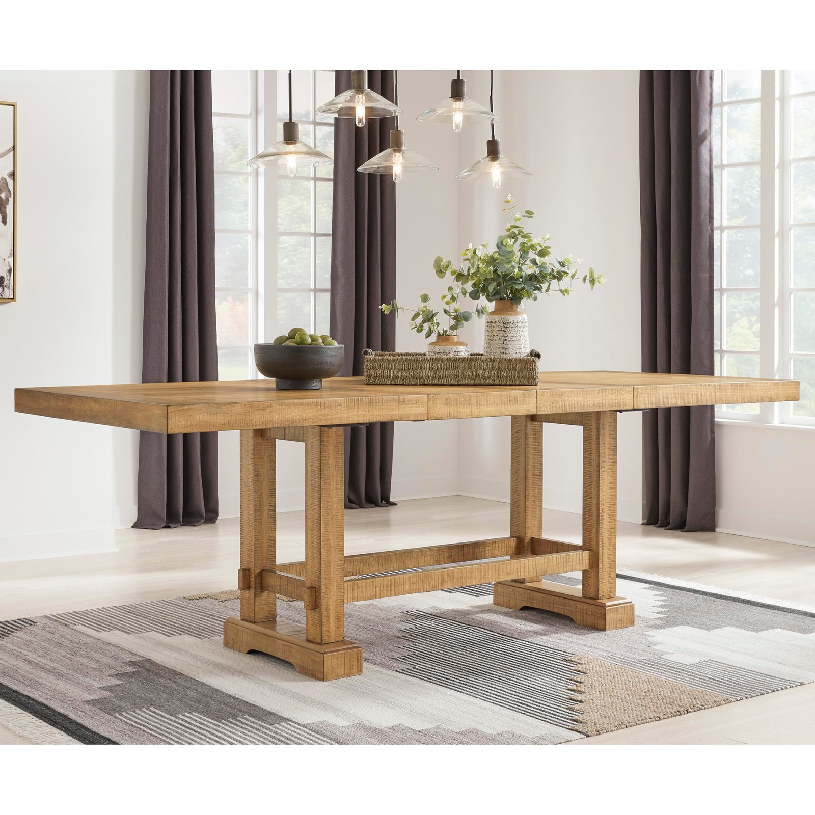 Height Dining Extension Table with Removable Center Leaf and Double Trestle Base, Light Brown