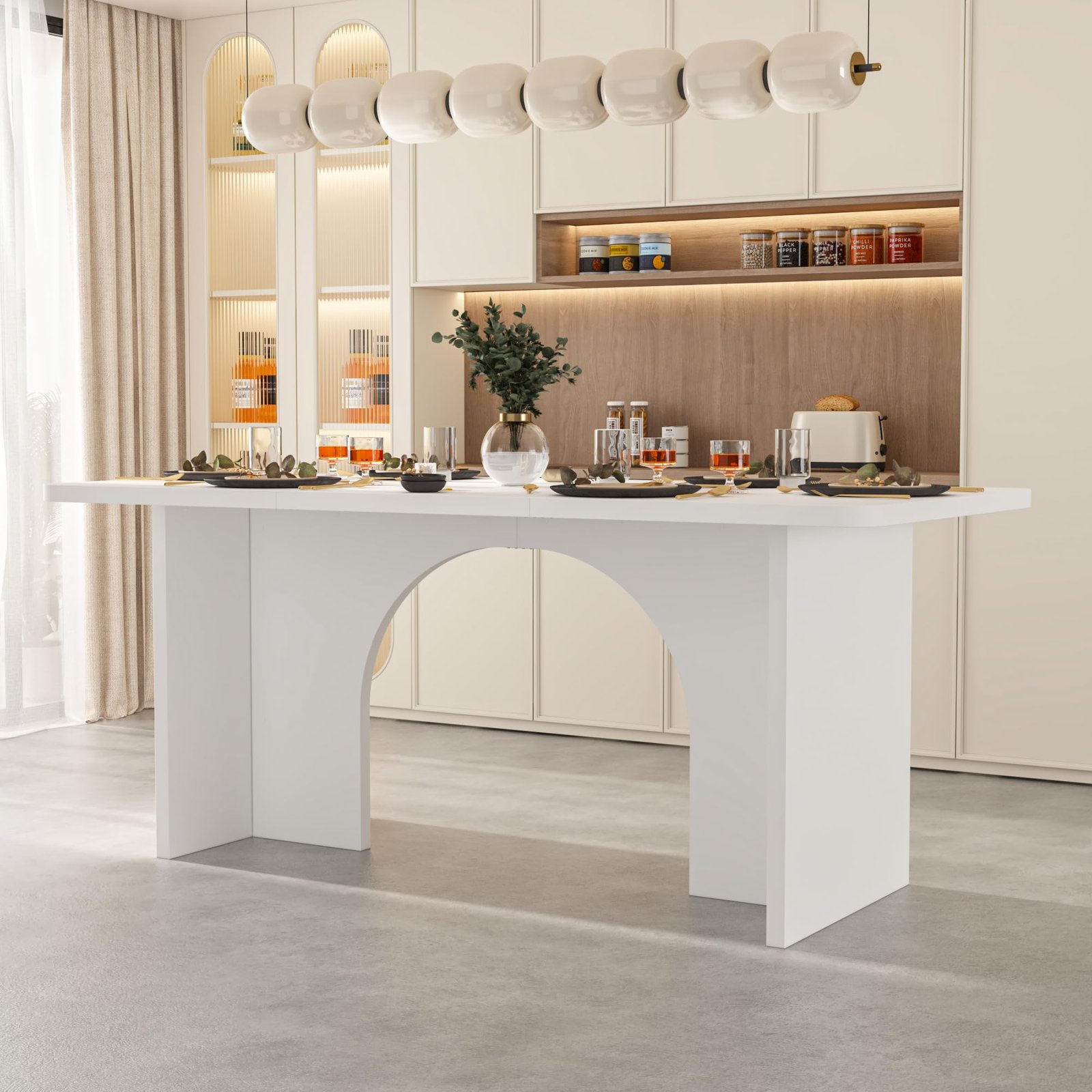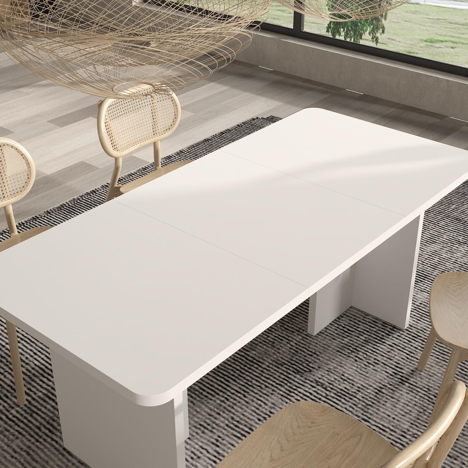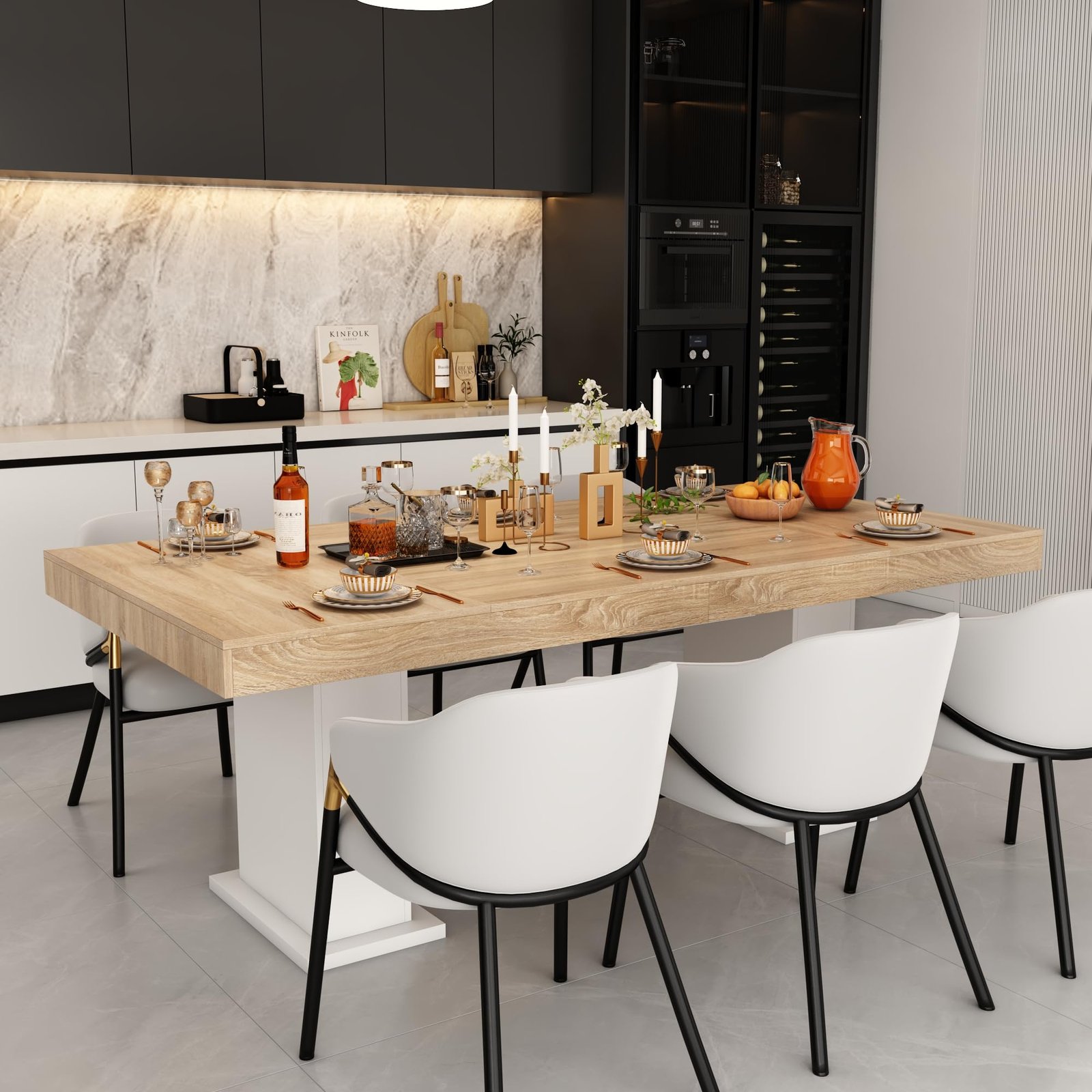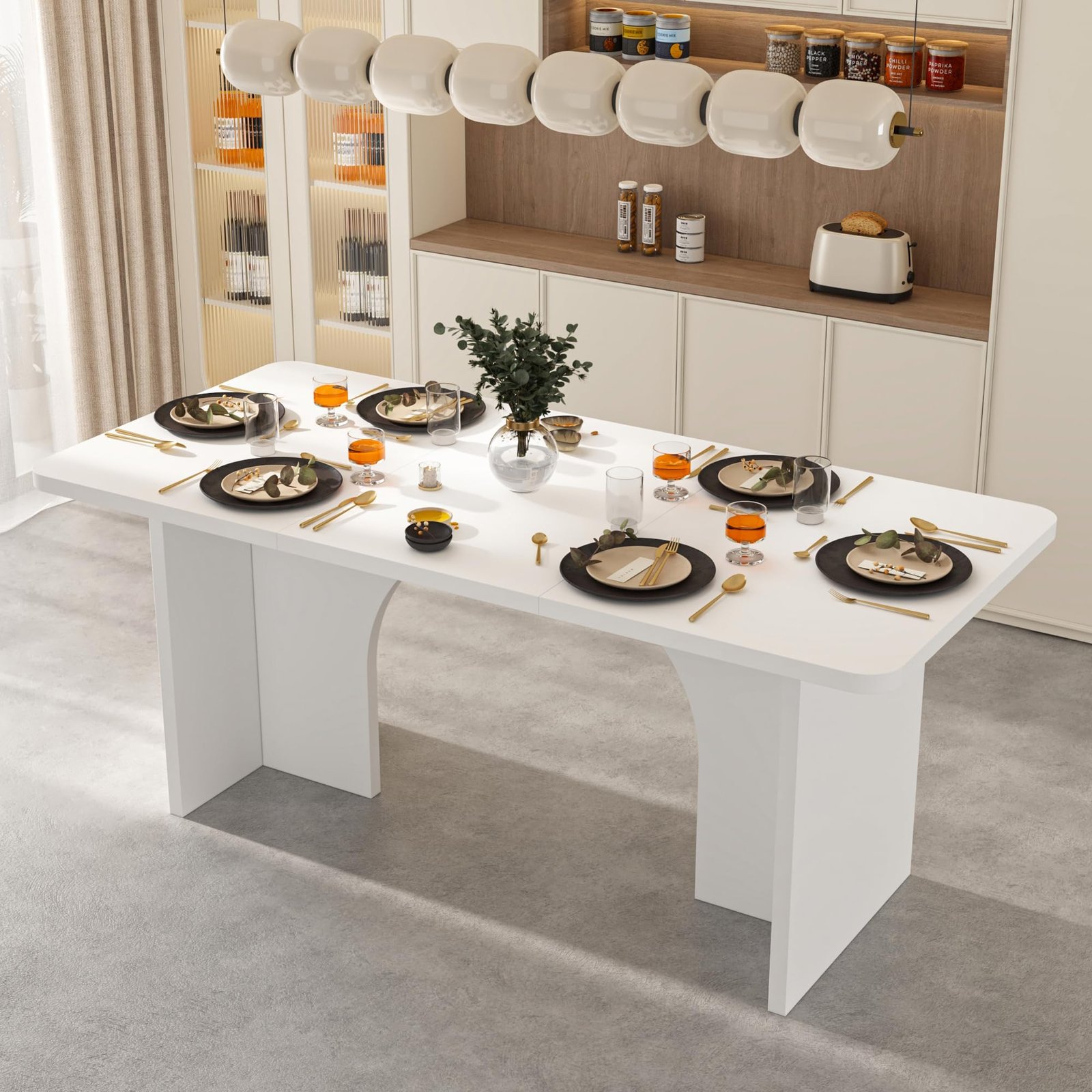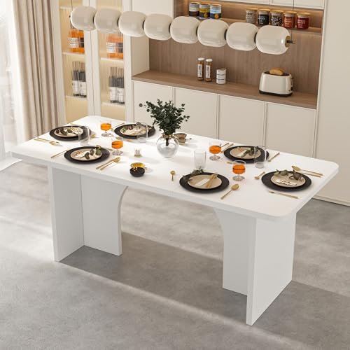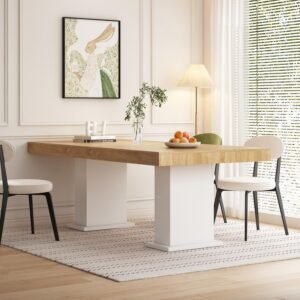 · [Minimalist but Detailed Design] – The modern dining table features a clean, minimalist design that elevates your dining room, blending seamlessly with various interior decors. The natural wood grains on the tabletop and the white pedestals, stylish design and adding modern atmosphere,making this table full of details