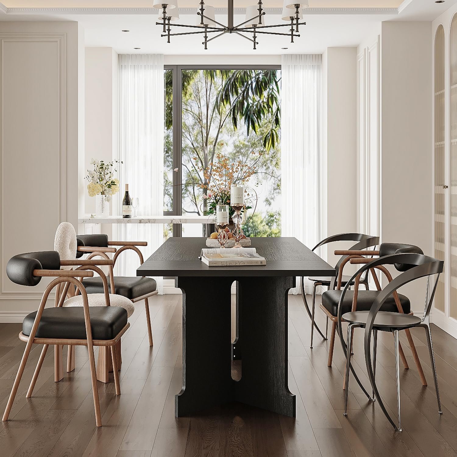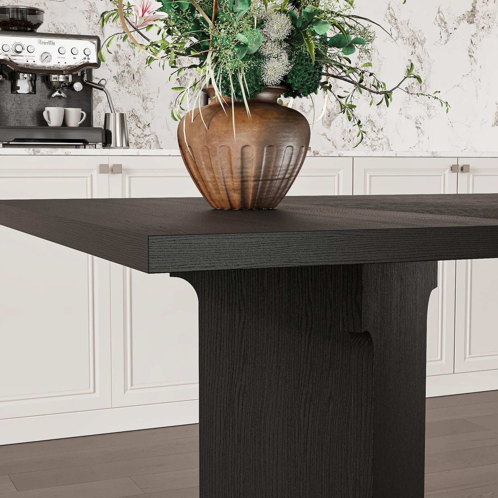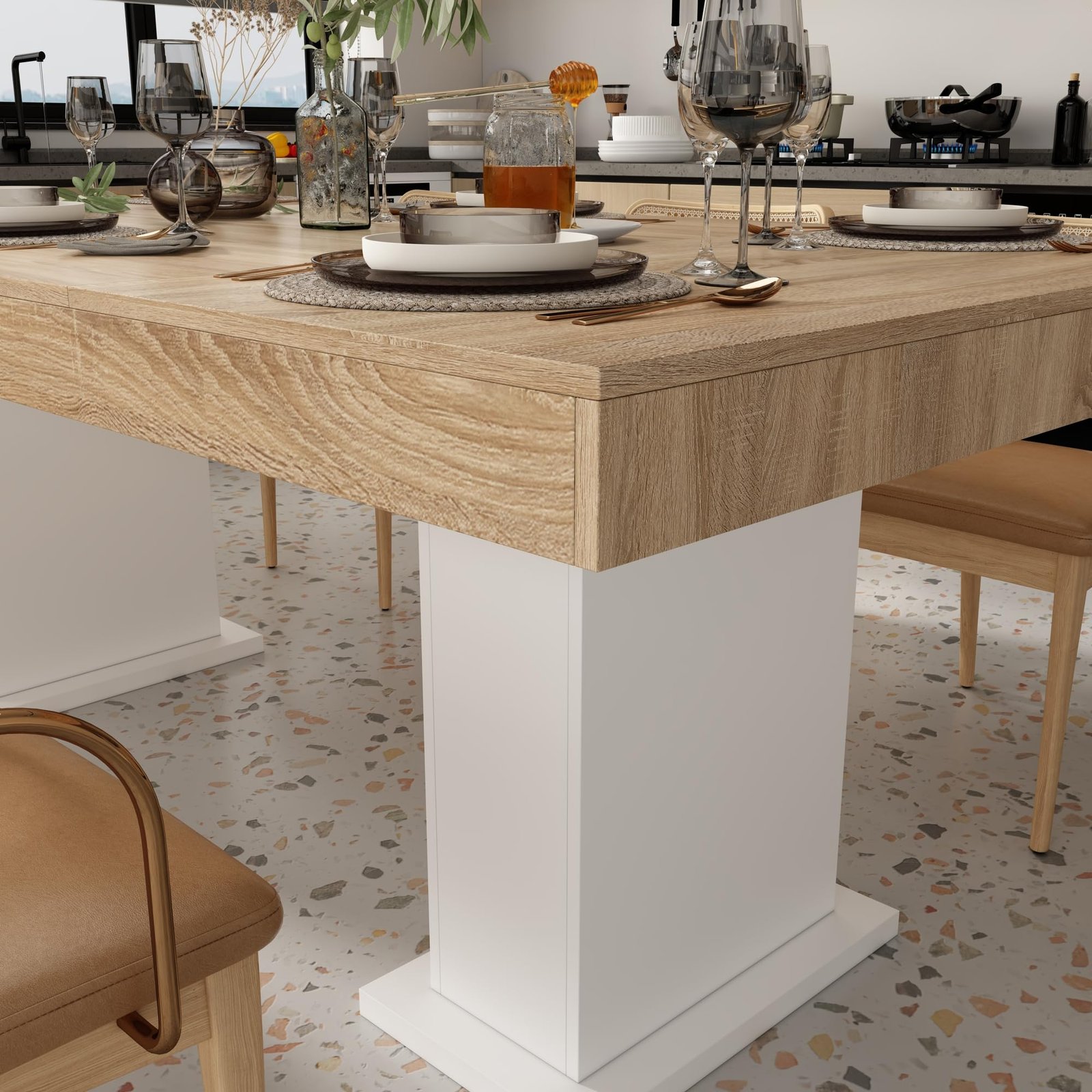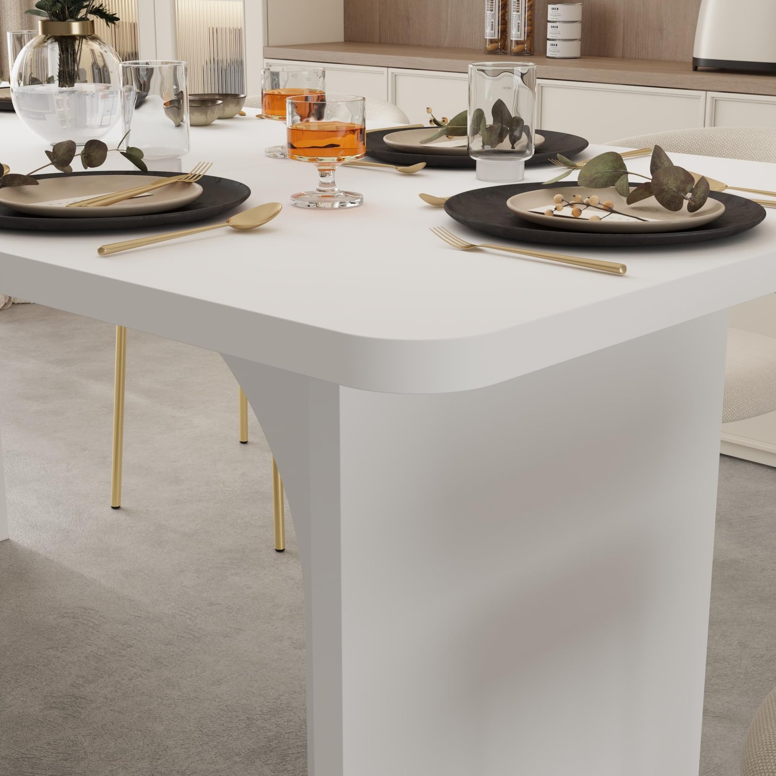 · [Minimalist but Detailed Design] – The modern dining table features a clean, minimalist design that elevates your dining room, blending seamlessly with various interior decors. The natural wood grains on the tabletop and the white pedestals, stylish design and adding modern atmosphere,making this table full of details