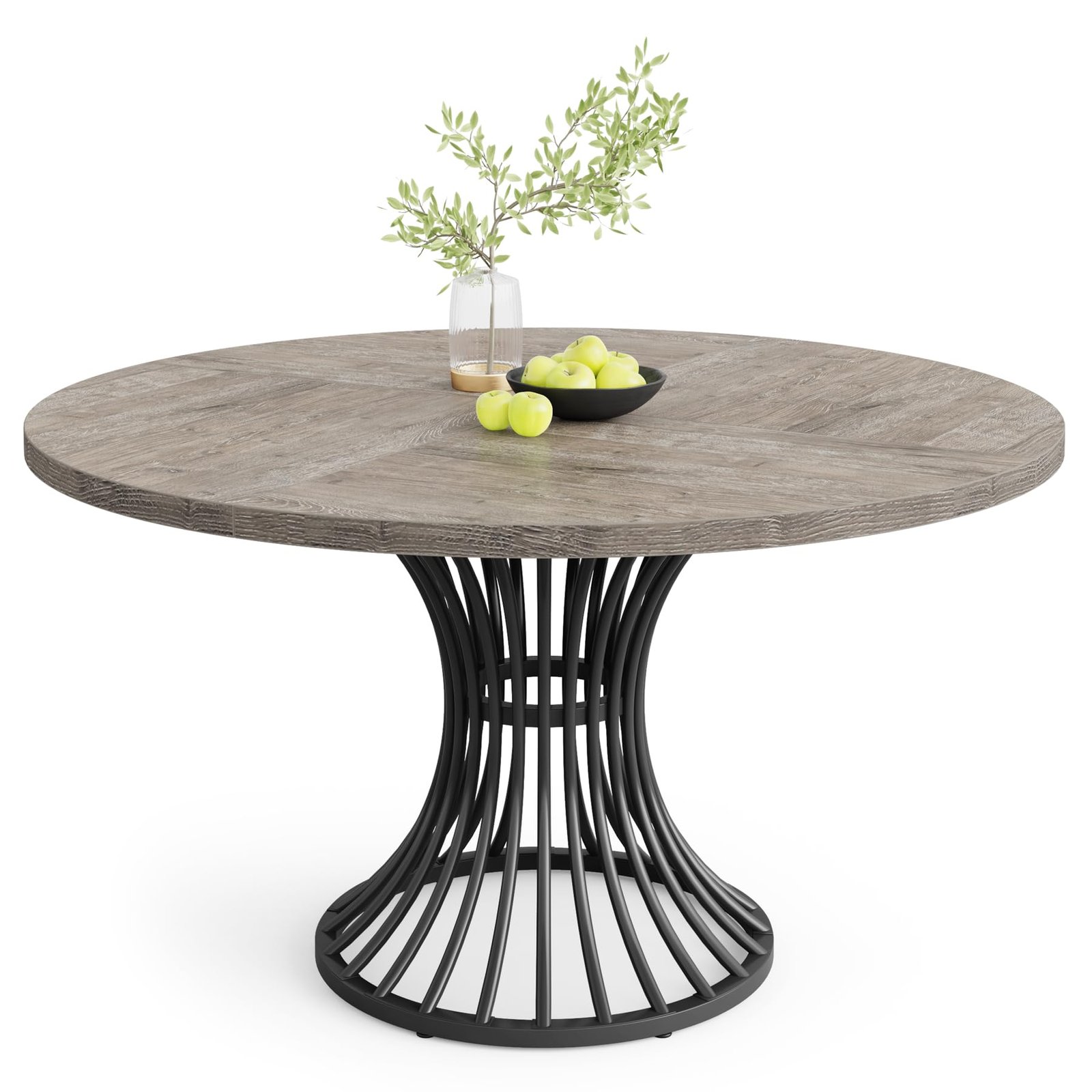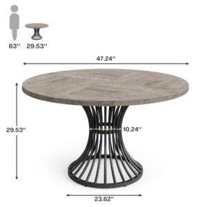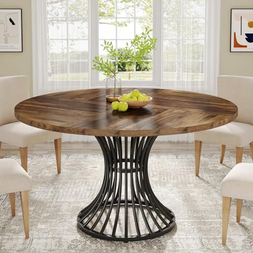 Round Dining Table for 4-6 People, 47-Inch Farmhouse Dinning Room Circle Kitchen Table, Industrial Dinner Table with Metal Base for Kitchen, Living Room, Black and Brown