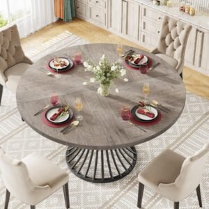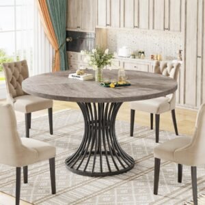 · SPACIOUS TABLETOP: This dinner table can comfortably seat up to 6 people, making it an ideal choice for family gatherings or dinner parties. The spacious tabletop of this round dining table allows ample space for placing dishes, glasses, utensils, as well as serving ware and decorations.