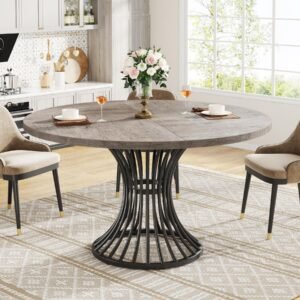 · EYE-CATCHING DESIGN: Shaped like an hourglass and featuring graceful curves, the unique design of the metal base lends a timeless touch to any room. This round dining table enhances your dining room's charm with its classic retro aesthetic, while contributing to a romantic ambiance in your dining space.