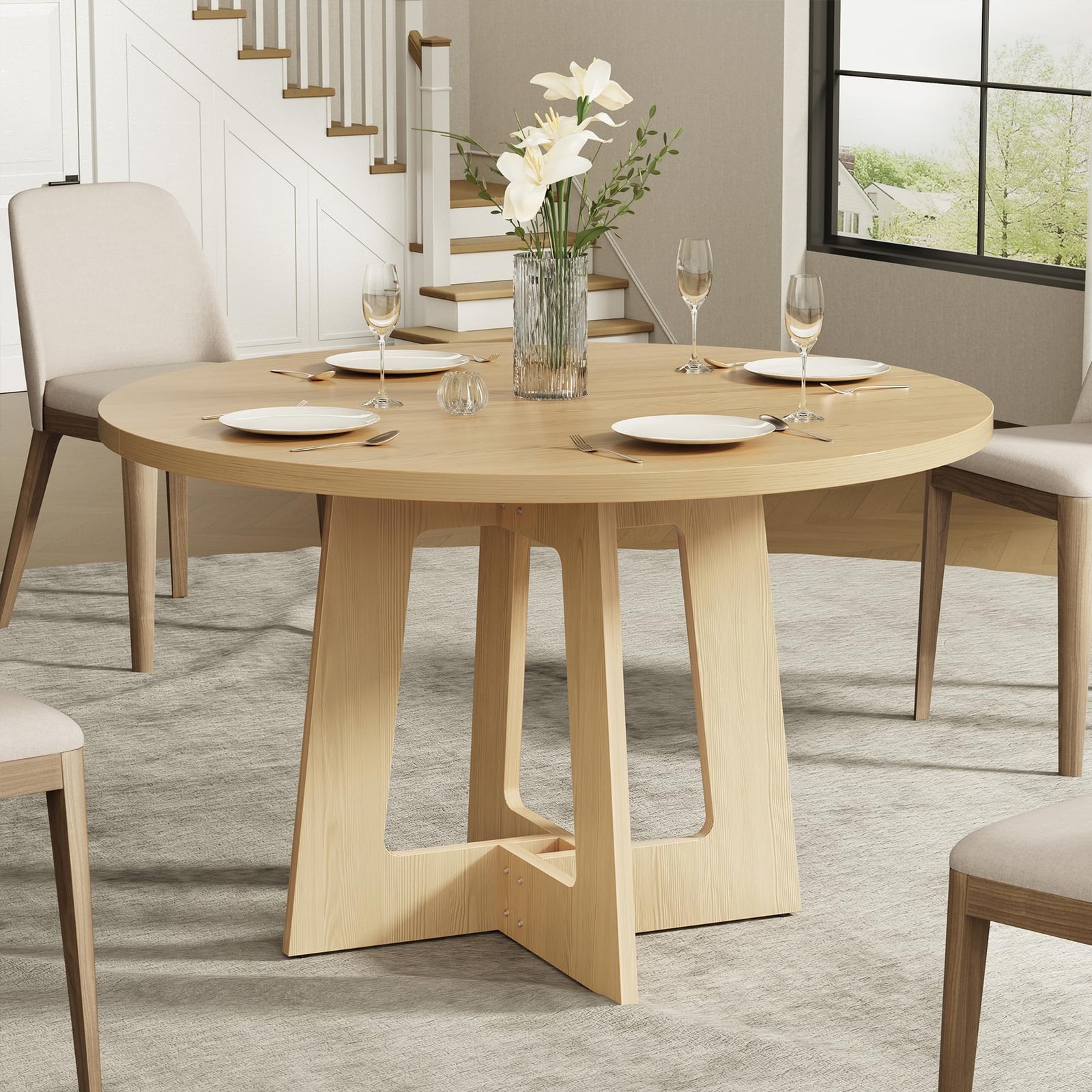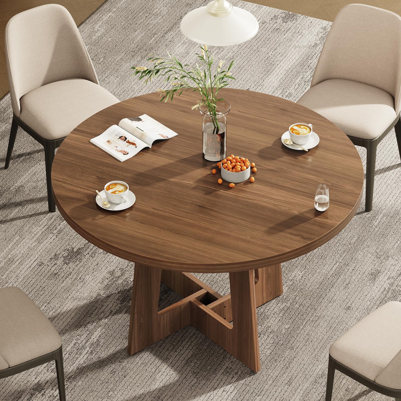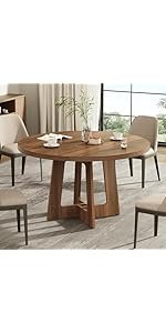 Round Dining Table for 4, Farmhouse Kitchen Table, Wooden Circle Dinner Room Table for Home Dining Room Kitchen Living Room (Walnut Brown)