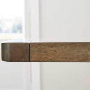 · CASUAL COMFORT: Your welcoming disposition is reflected in the table’s charming architectural elements and light brown glazed finish. A smooth extension serves up plenty of room for family and guests