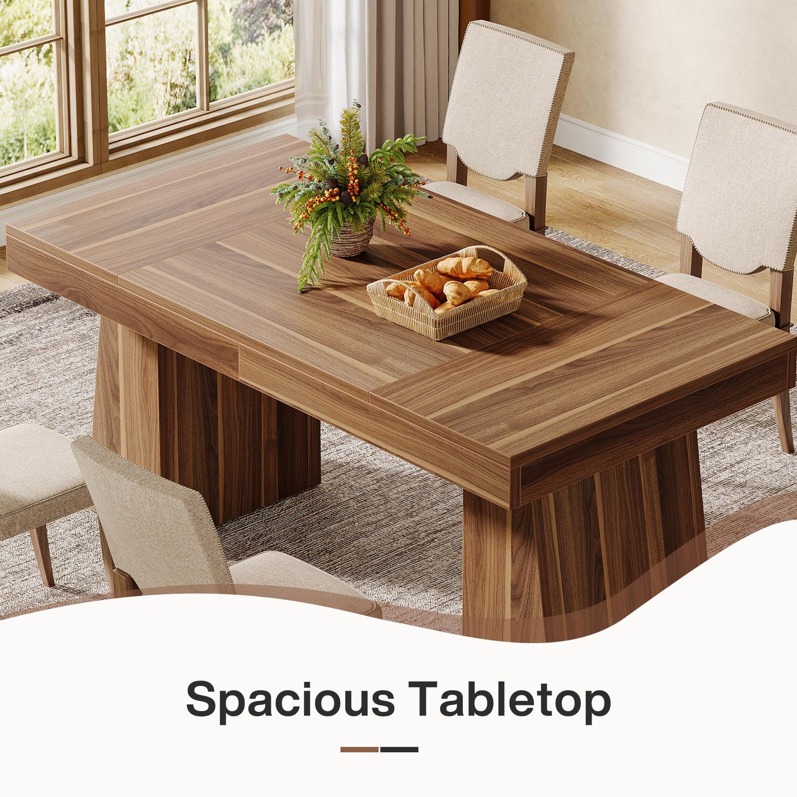 - The spacious surface of the wood kitchen table can accommodate a wide variety of delicious dishes, all kinds of dining utensils.